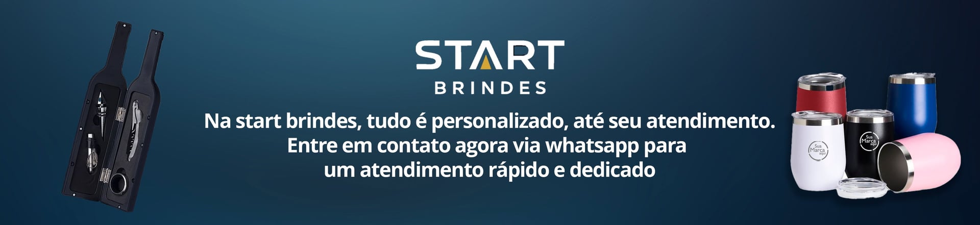 Nós da Start Brindes, não focamos apenas em vender rápido e entregar de qualquer jeito, nós gostamos de tornar seu evento único e totalmente personalizado da melhor forma possível, por isso ao invés de um ecommerce optamos por um atendimento com um especialista que irá entender sua real necessidade e ajudar você a montar seu brinde perfeito!