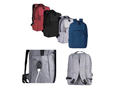 Descrição: Mochila de nylon 18 Litros com três compartimentos, Sendo o principal com bolso para notebook de 15,6". Com divisórias internas para acessórios, a mochila possui bolso lateral, suporte externo USB e alça para encaixe em malas de viagem.