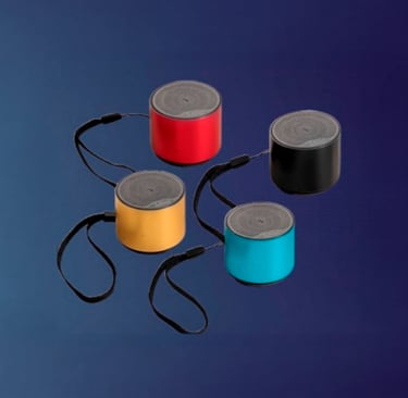 Descrição: Caixa de som compacta em plástico e metal. Possui conexão via Bluetooth e tecnologia TWS, que permite sincronizar duas caixas de som ao mesmo tempo. Conta ainda com entradas para cartão MicroSD e cabo USB-C, iluminação colorida em LED e base antiderrapante com botões para controle das funções. Acompanha cabo USB-C e cordão de nylon.